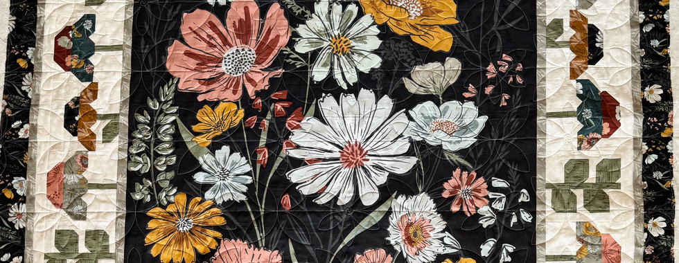 Flowers make me so happy! No matter the color, shape, or size, they always bring a smile to my face. This is the Indoor Garden pattern by Coach House Designs featuring Woodland and Wildflowers by Fancy That Design House quilted using the Easy Blooming Orange Peel panto.